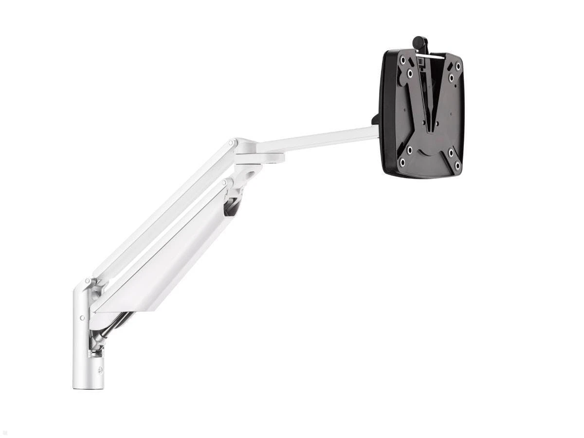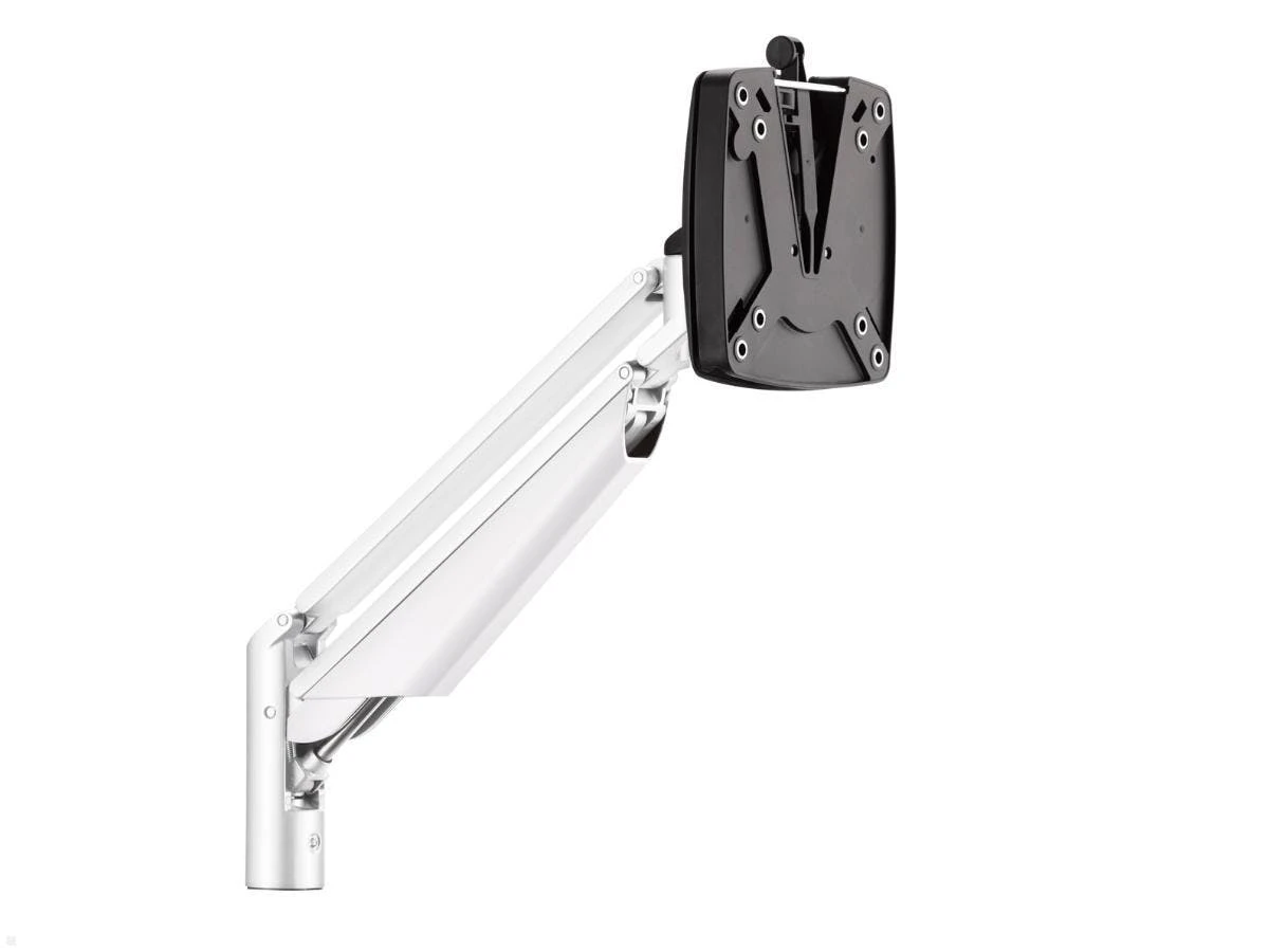 Die Novus Clu II Monitorhalterung (990+2001+000) in Weiß, ist ein zweiteiliger Monitorarm. Ein Gewicht von 2 bis 7 kg kann an der Halterung geschwenkt, geneigt und in der Hö,he verstellt werden. Die Befestigung des Monitor Halters erfolgt mit einer Tischklemme, einer Durchschraub- oder Kabellochbefestigung (nicht im Lieferumfang enthalten!).