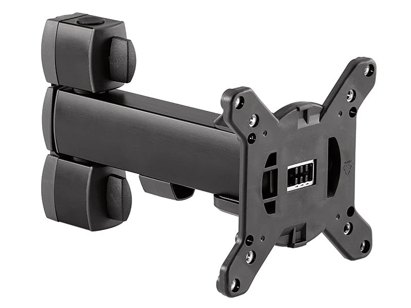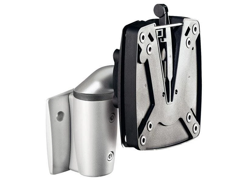 Die Novus MY one plus SW schwenkbare Monitorhalterung (910+2079+000) ist mit einem 350 mm langen Tragschlitten zur Montage an einer Slatwall ausgestattet. Das Display kann ander Halterung stufenlos in der Hö,he verstellt werden.