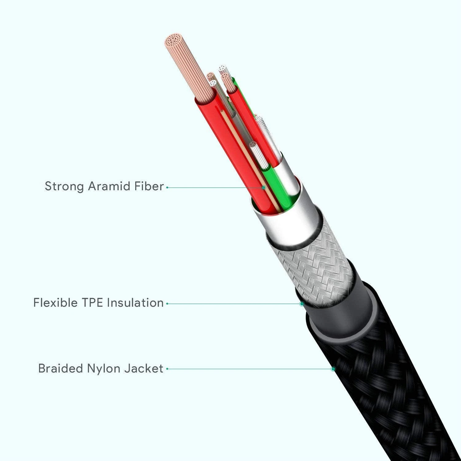 Langlebiges & flexibles Design: Strapazierfähige, geflochtene Nylon-A-zu-C-Kabel mit schlanken, reversiblen USB-C-Steckern und 5000+ Biege-Lebensdauer für eine einfache Verbindung