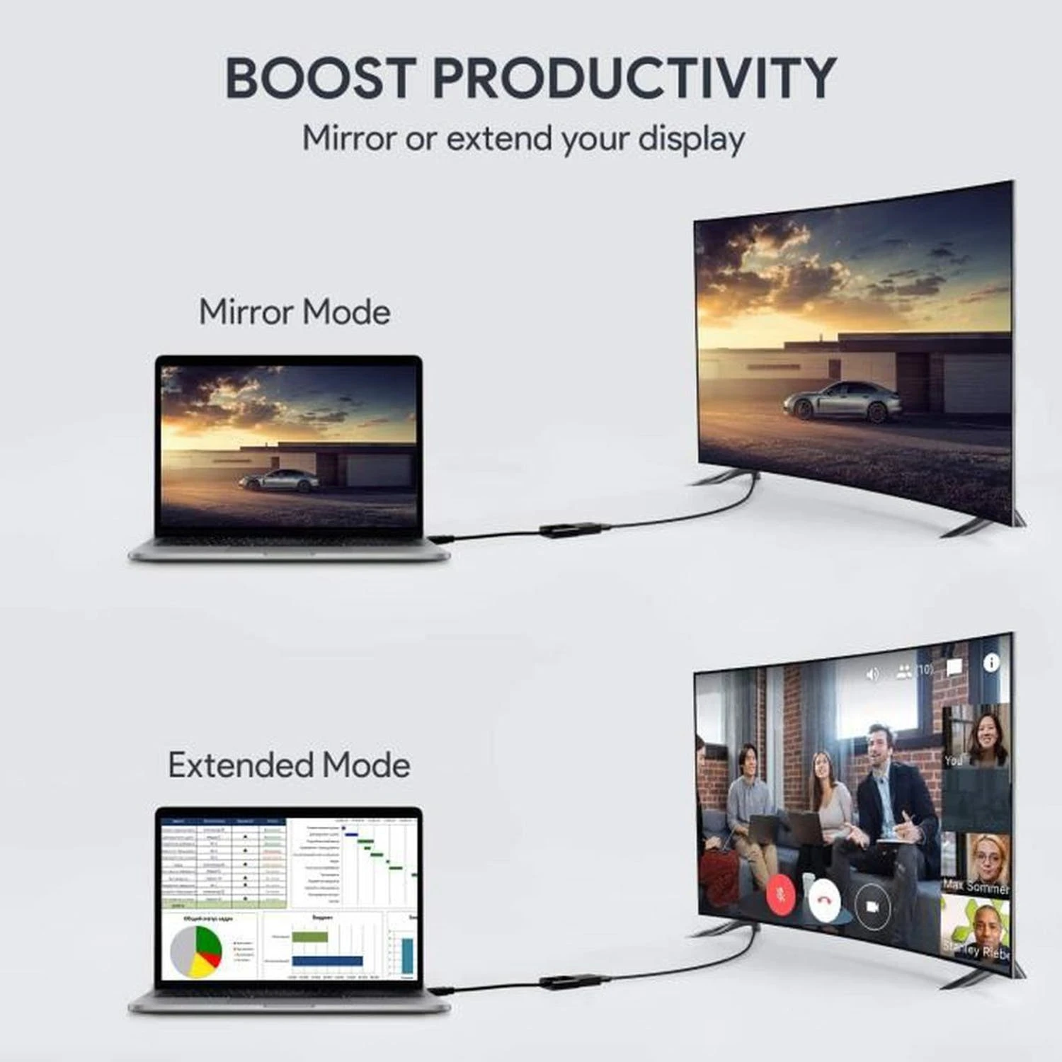 Es kann Videos von Ihren kleinen Bildschirmgeräten auf Ihre großen Bildschirmgeräte übertragen, ob in Ihrem Büro oder zu Hause, es kann verwendet werden, um eine Verbindung zwischen PC und Fernseher oder Projektoren herzustellen