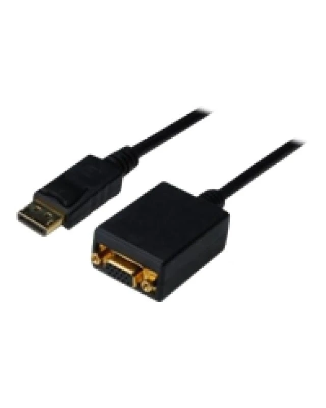 AWG: 32 · Anschluss-Typ: DisplayPort,VGA · Anschlusstyp A (bzw. Eingänge): DisplayPort Stecker · Anschlusstyp B (bzw. Ausgänge): VGA-Buchse · Anzahl Anschluss A: 1 x · Anzahl Anschluss B: 1 x · Auflösung Video optisch: 2 48 x 1152 Pixel · Farbe: Schwarz · Innenleiter-Material: Kupfer · Kabel-Anwendung: TV, Monitor · Kabel-Art (Kategorisierung): TV, Monitor Adapter · Kabel-Ausführung: Adapter · Kabel-Form: rund · Kabel-Version: DisplayPort 1.2,VGA · Kabellänge: .15 m · Signalfluss (Stecker A auf Stecker B): unidirektional · Stecker-Ausführung: gerade