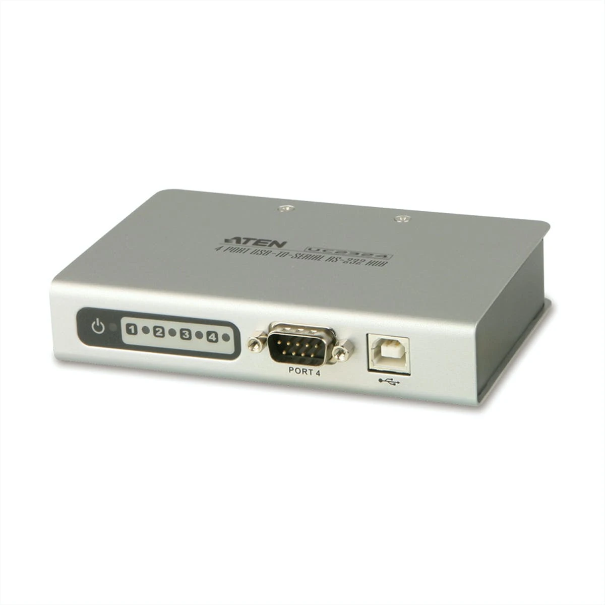 Verbindet gleichzeitg bis zu vier serielle Geräte