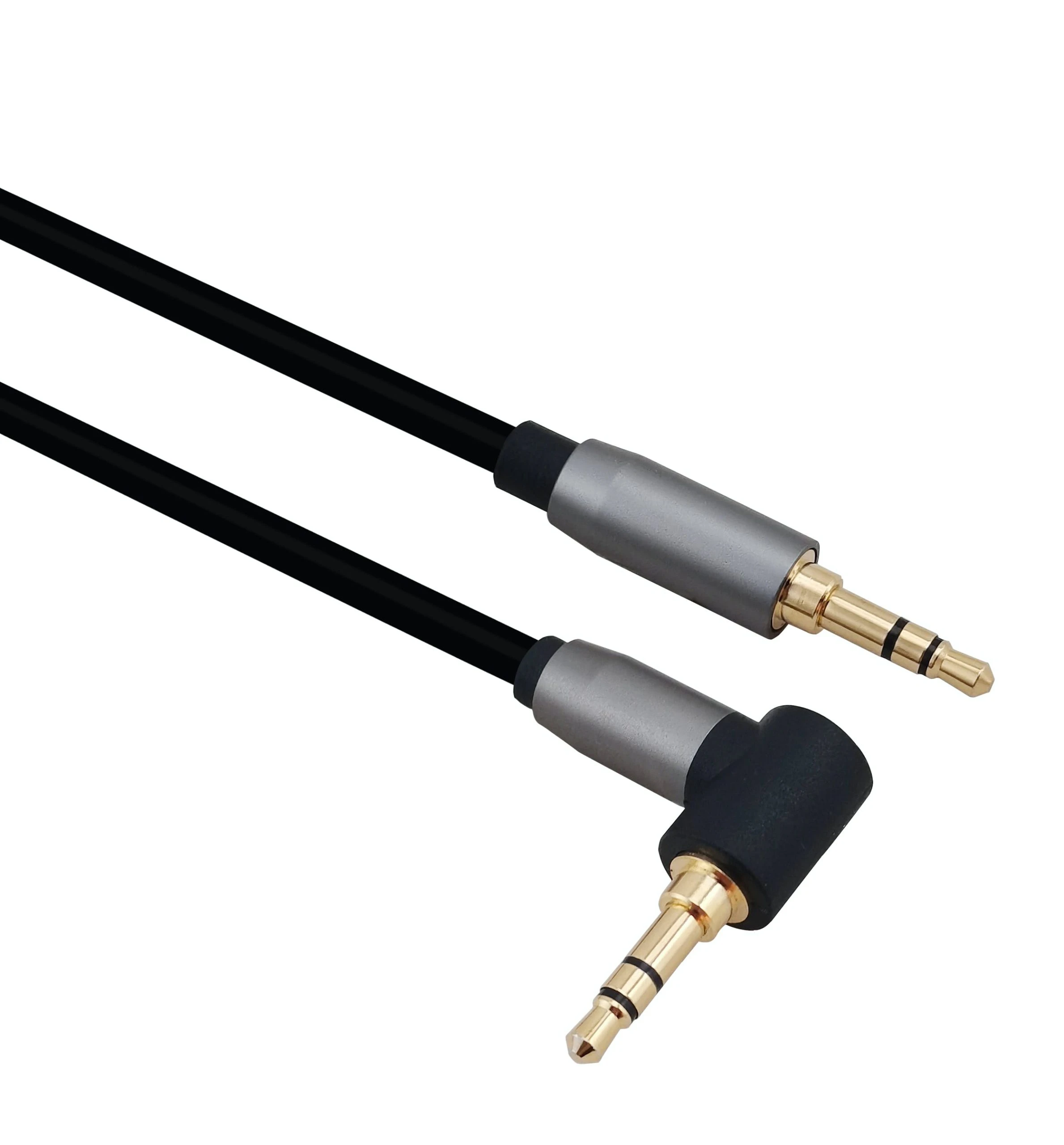 HELOS KLINKE ANSCHLUSSKABEL PREMIUM SCHWARZ – Klinke 3,5mm Stecker auf Klinke 3,5mm Stecker 90° abgewinkelt 3 Pin – vergoldete Kontakte – Aluminium-Gehäuse – PREMIUM, – ROHS 2.0 und REACH-konform – Farbe: schwarz