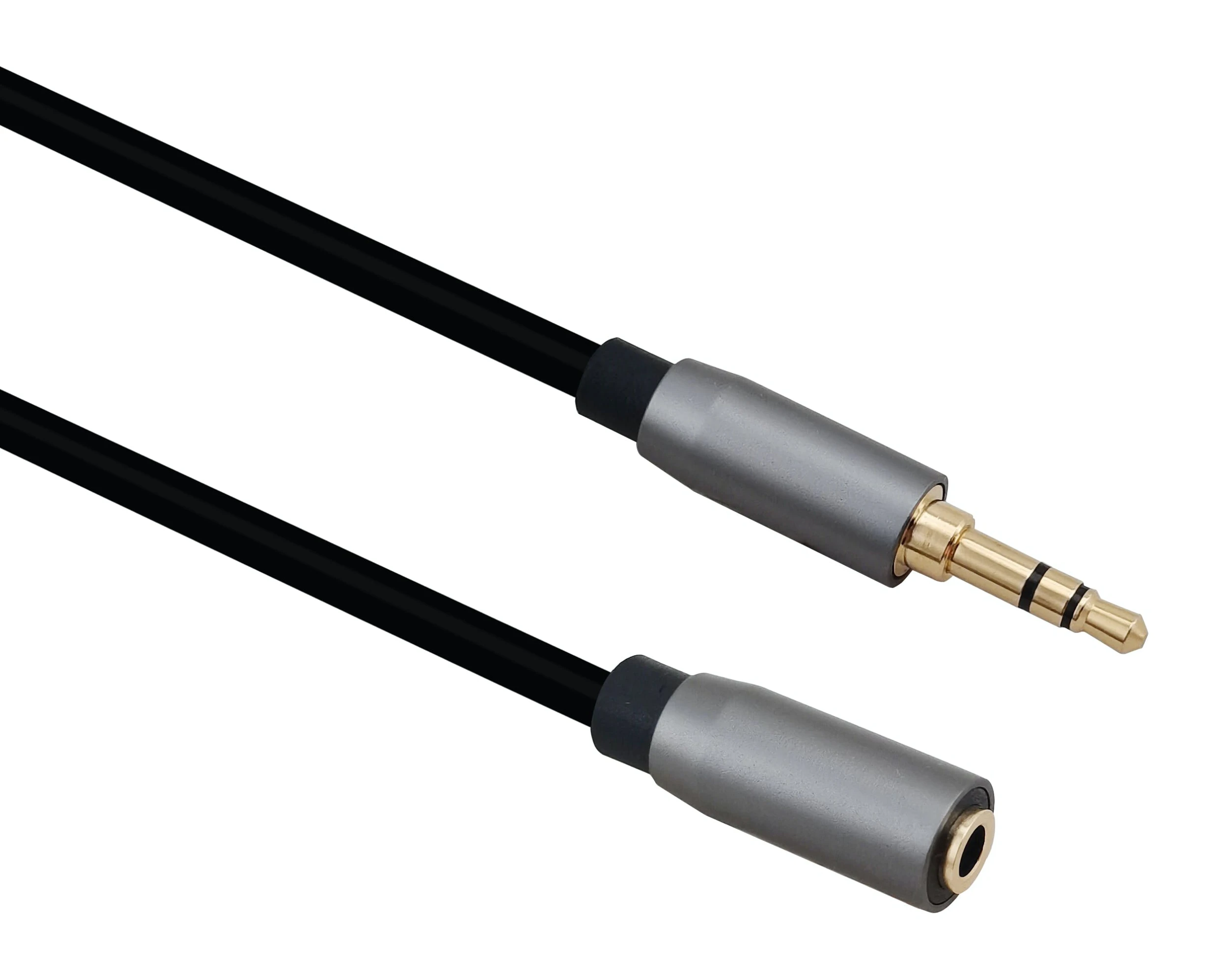 HELOS KLINKE AUDIO-VERLÄNGERUNGSKABEL PREMIUM SCHWARZ – Klinke 3,5mm Stecker auf Klinke 3,5mm Buchse 3 Pin – vergoldete Kontakte – Aluminium-Gehäuse – PREMIUM, – ROHS 2.0 und REACH-konform – Farbe: schwarz