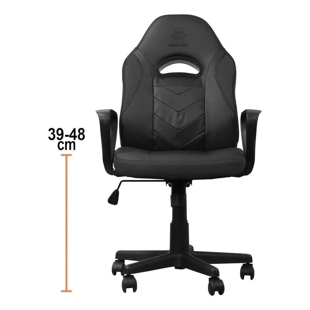 Der Stuhl hat eine bequeme Sitzfläche von 44,5 cm x 40 cm mit einer Rückenlehne von 45 cm x 55 cm. Der Stuhl ist hoch und absenkbar, aber die Armlehnen sind feststehend.