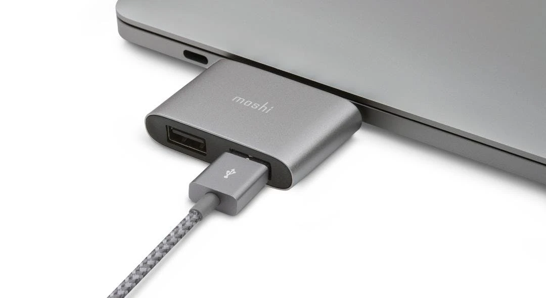 Das perfekte Zubehör für digital Kreative unterwegs: Moshis USB-C Multimedia-Adapter bringt kritische Funktionalität für jedes USB-C Gerät. Dieser 3-in-1 Adapter verfügt über einen integrierten SD-Kartenleser zur schnellen Übertragung von Fotos und Videos, einen HDMI-Video-Adapter zum Anschluss an ein externes Display und einen USB-Hub zur Speicherung von Backups und anderen Peripheriegeräten. Der Steckplatz für den Kartenleser unterstützt SD- und SDHC-/XC-Speicherkarten mit Übertragungsgeschwindigkeiten bis zu 104 Mbps. Der HDCP-konforme HDMI-Port gibt 4K UHD-Video (30 Hz) sowie Mehrkanal-Digital-Audio an unterstützte Geräte aus. Es gibt ebenfalls zwei USB 3.1 (Gen 1) Ports zur Datenübertragung bei bis zu 5 Gbps, die auch angeschlossene Geräte laden.