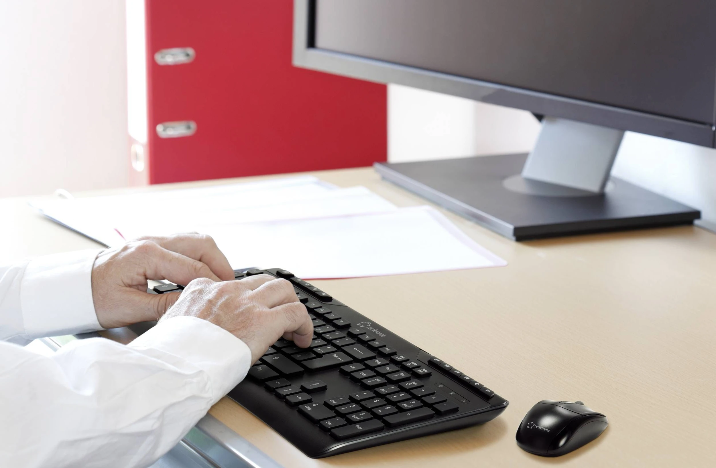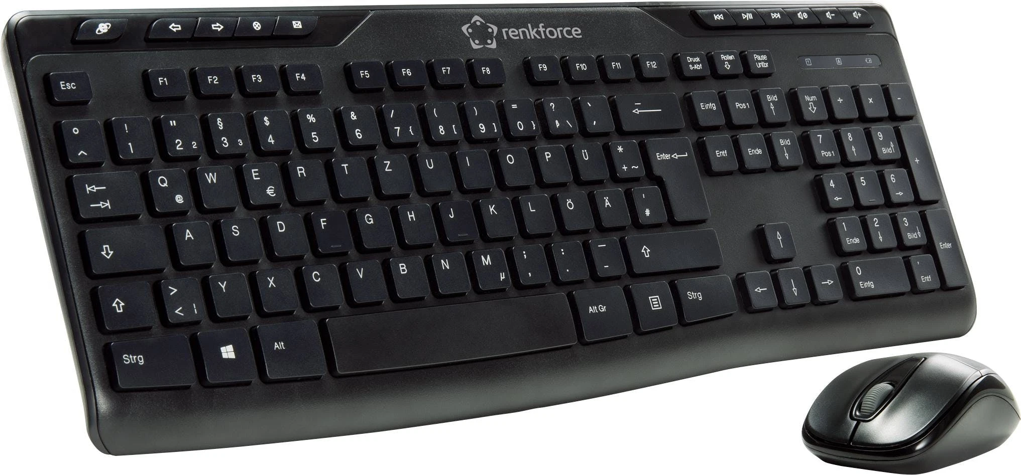 Drahtloses Arbeiten ohne Unterbrechung: Mit dem Renkforce RF-KMC-510 Funktastatur-Maus-Set und seiner 2.4 GHz-Funkverbindung ist das Arbeiten ohne störende Kabel ein Kinderspiel. Der kleine USB-Empfänger stellt zuverlässig eine Verbindung sicher mit bis zu 10 m Reichweite. Sowohl die komfortabel zu bedienende Maus als auch die Tastatur mit ansprechendem Design verfügen über einen automatischen Energiesparmodus und sorgen so für lange Batterielaufzeiten.