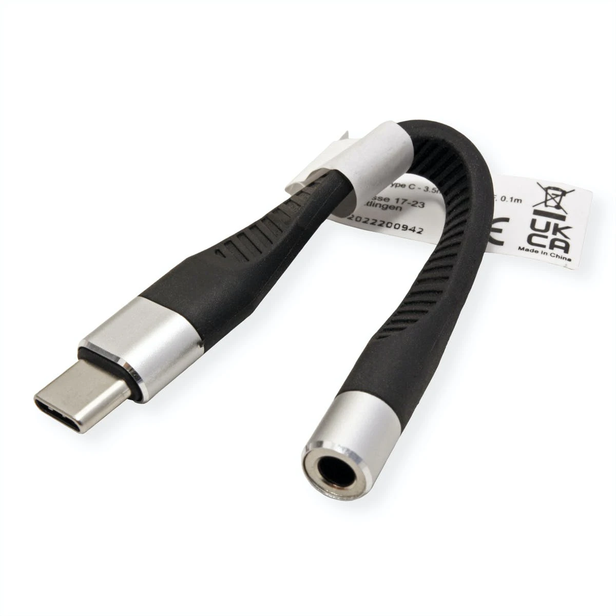 Das Adapterkabel wandelt den USB-Typ-C-Anschluss in eine 3,5mm Audio-Kopfhörer-Buchse um. Stabile Signalübertragung. Tragbar für den mobilen Einsatz. Steckverbinder: 3,5mm Buchse (3polig) und Typ C Stecker. Kabellänge: ca. 10 cm