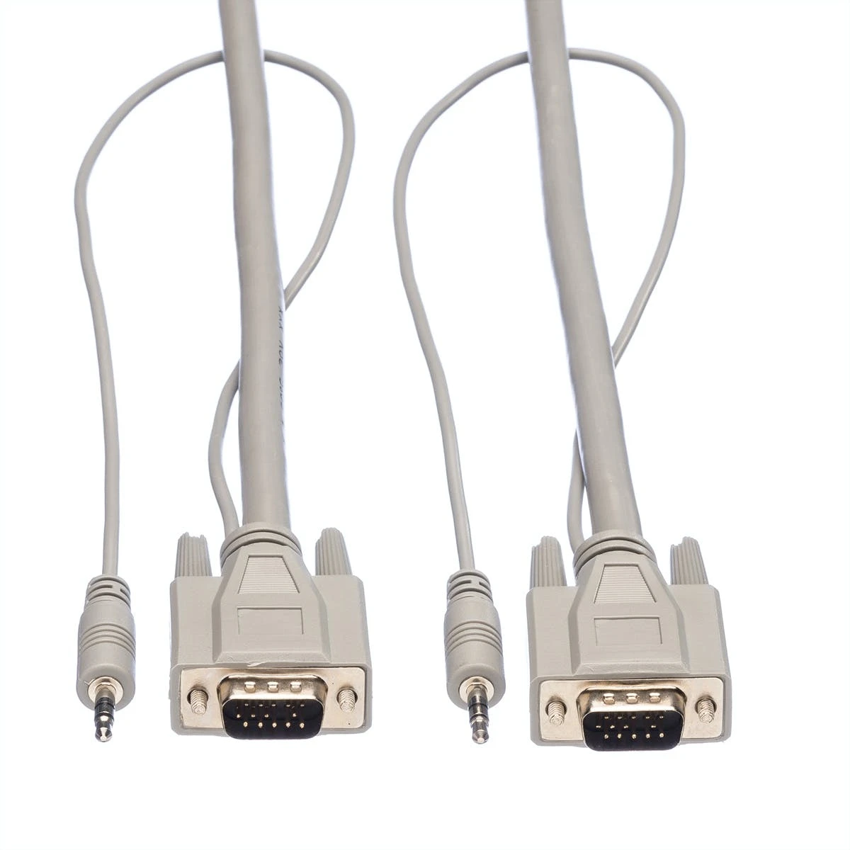 In Präsentationsbereichen werden Monitore in Kombination mit Lautsprechern aufgestellt. Zu deren Anschluss an den PC bzw. an den Verteiler können diese Kombikabel eingesetzt werden.. Die sonst getrennten Kabel für VGA und Audio sind in einem Kabel zusammengefasst. Auf beiden Seiten zweigt jeweils ein 3,5mm-Stecker für den Lautsprecheranschluss vom VGA-Stecker (HD 15pol.) ab. Handverriegelungsschrauben am VGA-Stecker. Farbe: dunkelgrau. Hinweis: Bitte beachten Sie unsere Video-/Audio-Splitter