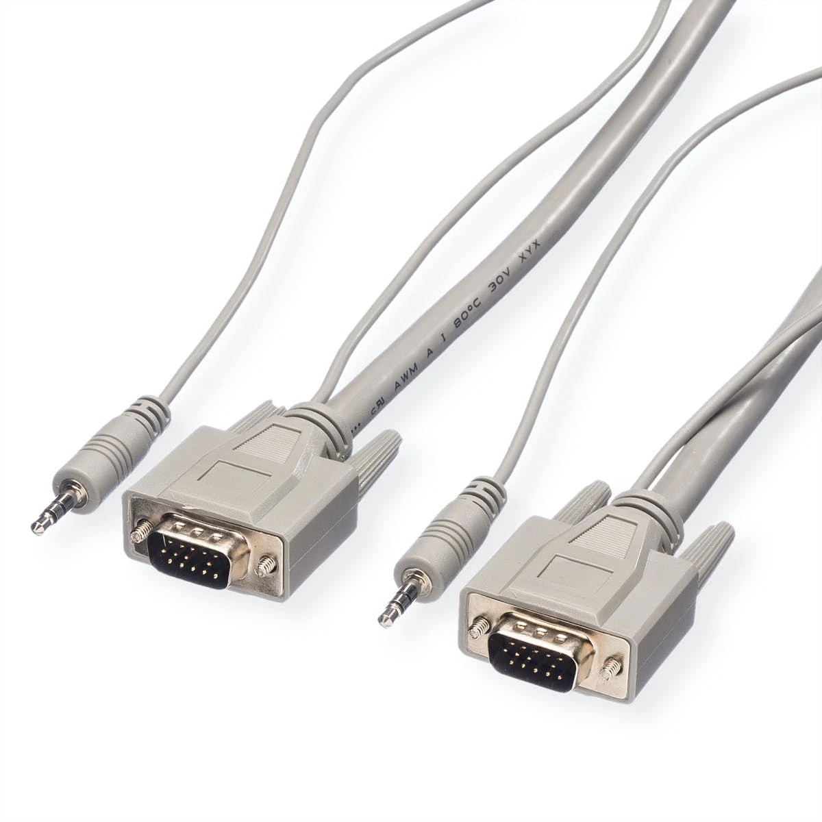 In Präsentationsbereichen werden Monitore in Kombination mit Lautsprechern aufgestellt. Zu deren Anschluss an den PC bzw. an den Verteiler können diese Kombikabel eingesetzt werden.. Die sonst getrennten Kabel für VGA und Audio sind in einem Kabel zusammengefasst. Auf beiden Seiten zweigt jeweils ein 3,5mm-Stecker für den Lautsprecheranschluss vom VGA-Stecker (HD 15pol.) ab. Handverriegelungsschrauben am VGA-Stecker. Farbe: dunkelgrau. Hinweis: Bitte beachten Sie unsere Video-/Audio-Splitter