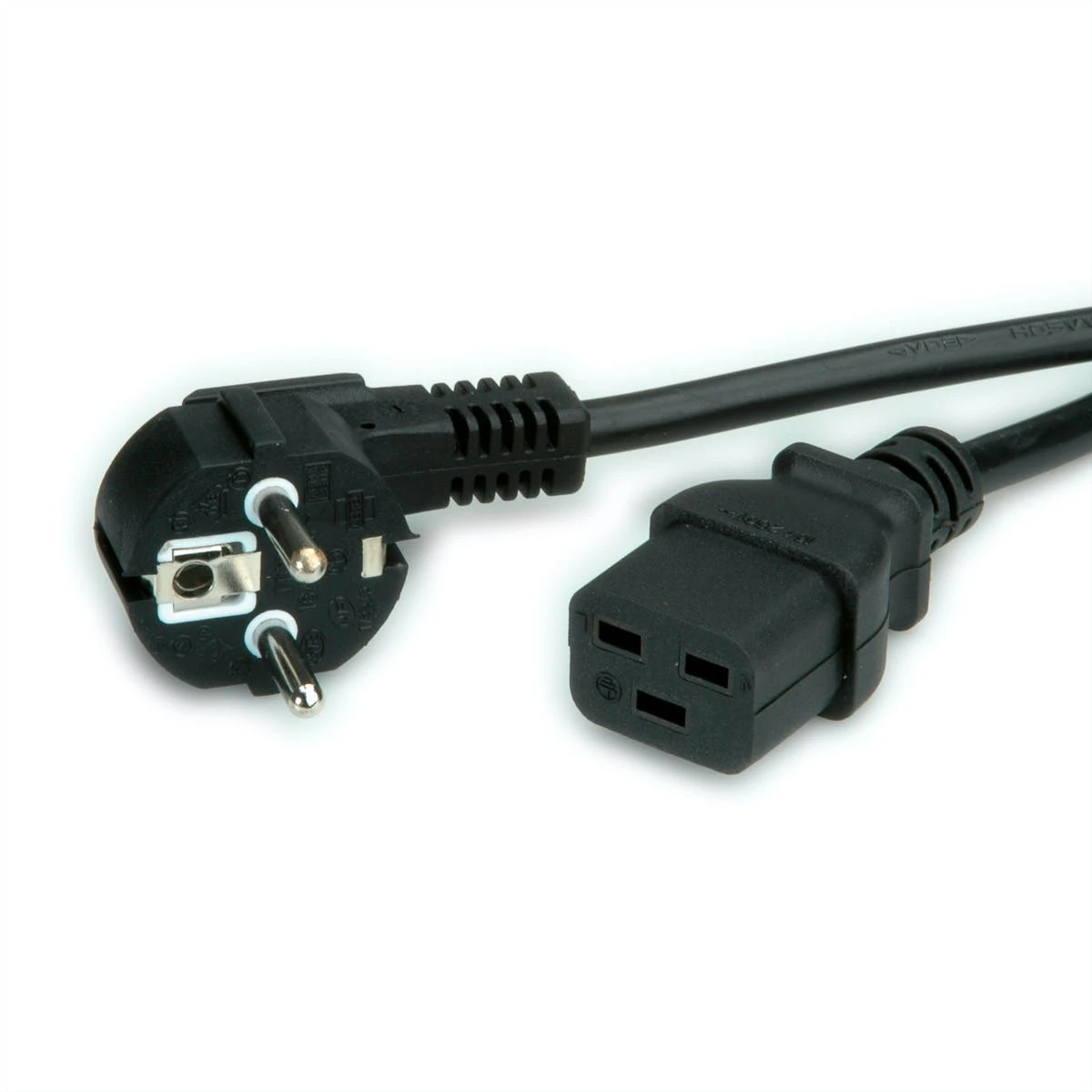 Kaltgeräte-Anschluss-Kabel 16 A mit IEC320 C19 Buchse und Schutzkontakt-Stecker, oft verwendet bei USV ab 3000VA und zum Anschluss von Blade-Servern