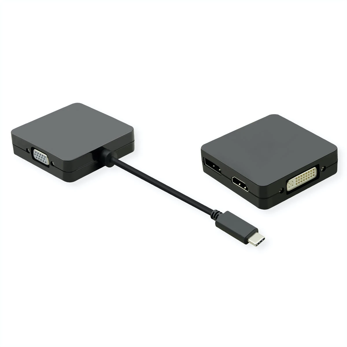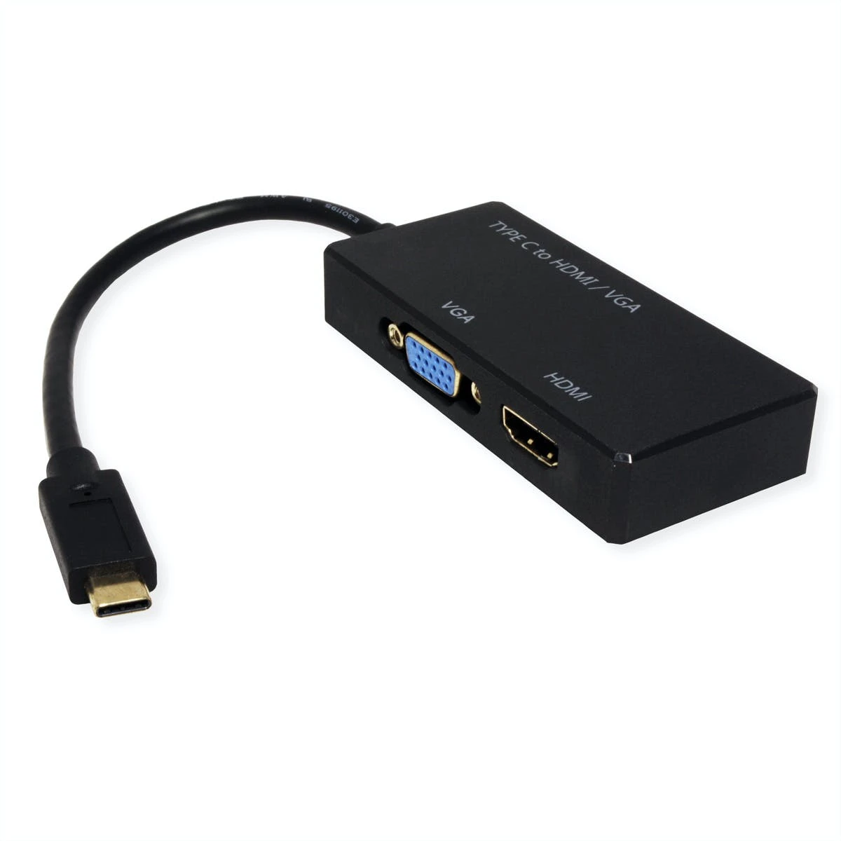 USB 3.1 / 3.2 Gen 2 Typ C zu HDMI/VGA Kabeladapter für Macbook, Ultrabook, Notebook/Laptop oder PC. Damit können Sie Ihr Display auf z.B. Ihren HDMI-fähigen Fernseher oder einen HDMI- oder VGA-kompatiblen Monitor oder Projektor spiegeln. Kein Netzteil erforderlich. Anschlüsse: HDMI- und VGA-Buchse und Typ C Stecker. Kabellänge: ca. 10 cm