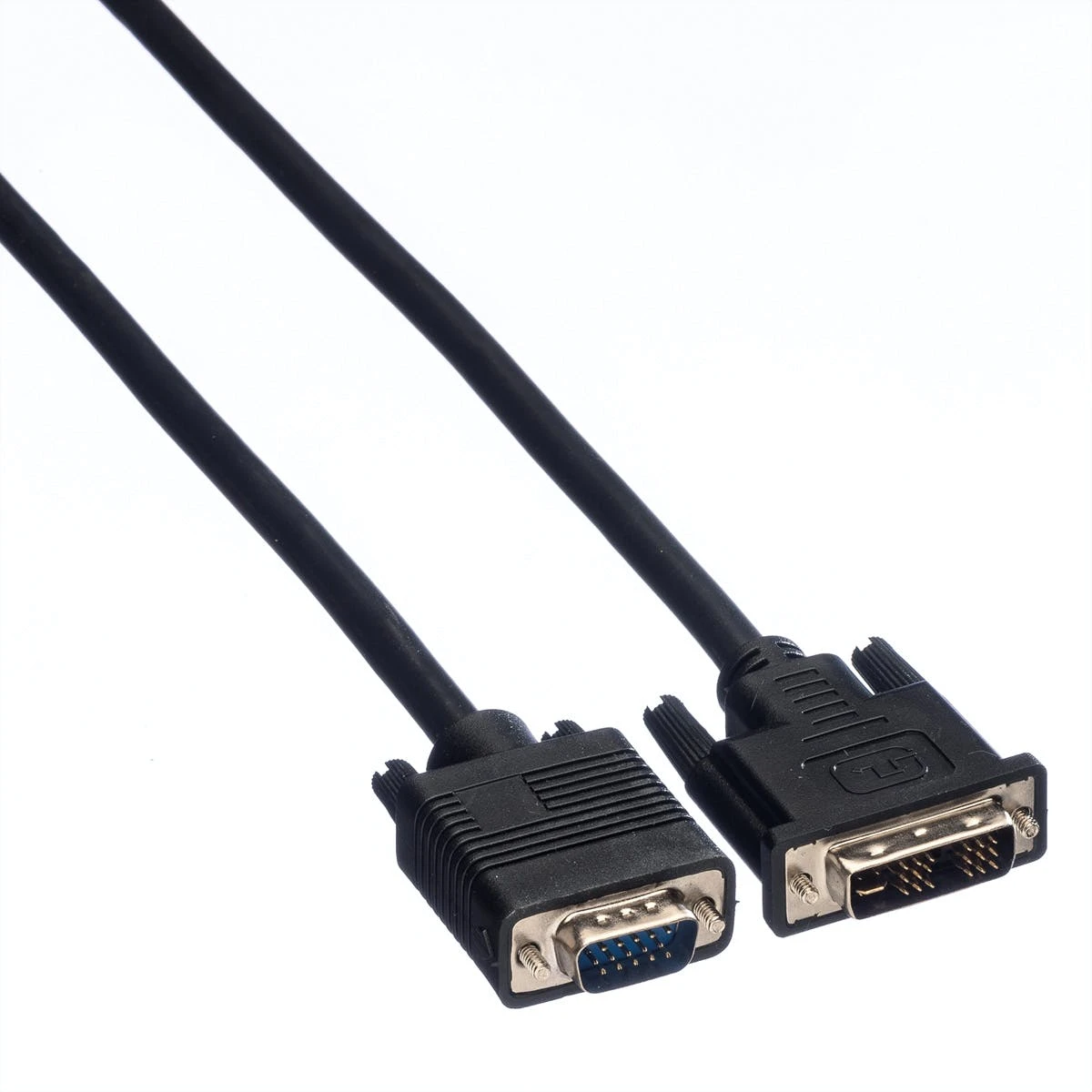 Zum Anschluss von DVI-Monitoren mit analogem (DVI-A) oder (DVI-I) Eingang an eine Standard-VGA-Grafikkarte.. Kabel mit einem DVI-A-Stecker und einem VGA-Stecker
