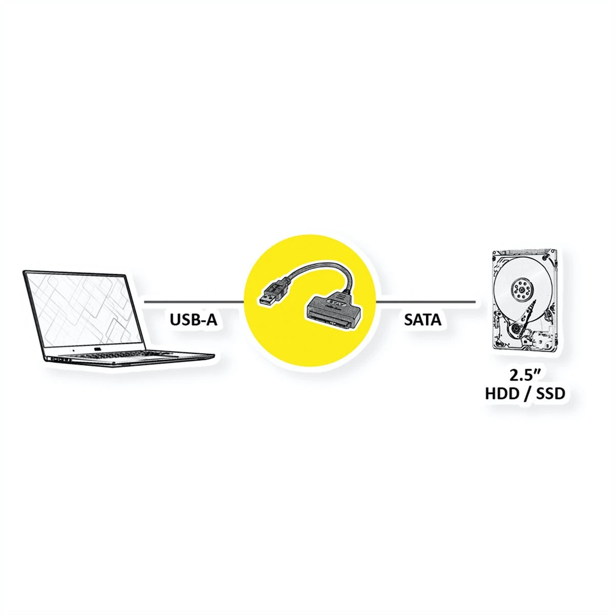 Einfache Möglichkeit, eine SATA 6,0 Gbit/s Festplatte über einen USB 3.1 / USB 3.2 Gen 1 Port mit einem Computer oder Notebook zu verbinden. Geeignet für Typ 2.5 Serial ATA HDD/SSD. Kompatibel mit SATA 6.0 Gbit/s. Unterstützt Übertragungsraten von bis zu 5,0 Gbit/s. Verbindung zum Computer: USB Typ A. Verbindung zur Festplatte: 15-poliger SATA-Strom + 7-polige SATA-Daten. Hot-Swap-fähig, Plug & Play. Länge USB-Kabel: 0.15 m